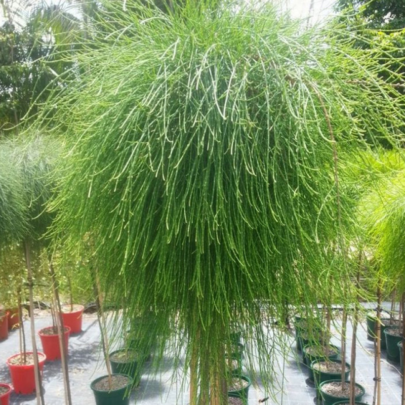 The Casuarina glauca, commonly known as Swamp She-Oak or Coastal Casuarina, is a fast-growing evergreen tree widely used for landscaping, windbreaks, and coastal plantation. Known for its fine, needle-like foliage and strong adaptability, it thrives in harsh conditions including sandy soils and saline environments.
